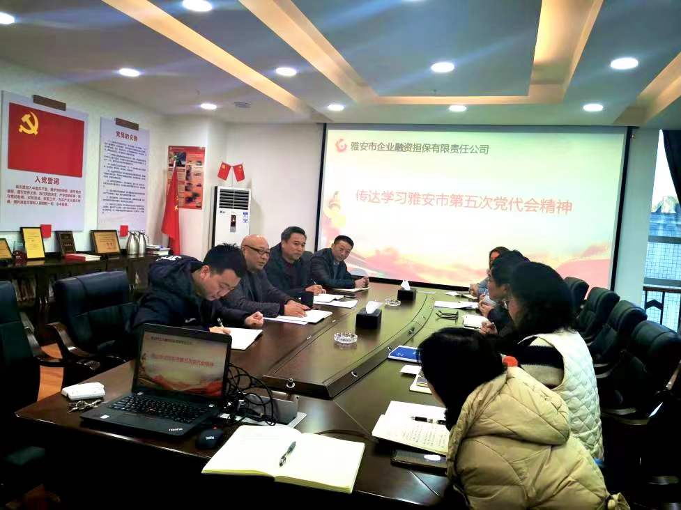12月24日,市擔(dān)保公司召開支委(擴(kuò)大)會,專題傳達(dá)學(xué)習(xí)雅安市第五次黨代會精神,并就貫徹落實(shí)情況進(jìn)行安排部署。市擔(dān)保公司黨支部書記、董事長尹福健主持會議。
